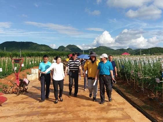 专家在砚山县国家现代农业示范区综合示范园考察“第五届中国砚菜IPM地展中心”