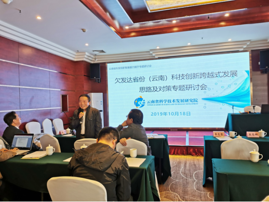 为做好2019年云南省科技发展战略与政策研究专项项目“科技支撑经济高质量发展系列研究”,10月18日,省科技发展研究院举办“欠发达省份(云南)科技创新跨越式发展思路及对策专题研讨会”,邀请广东亚太创新经济研究院、北京市长城企业战略研究所、江苏省科技发展战略研究院、宁夏科技发展战略和信息研究所、新疆维吾尔自治区科技发展战略研究院的知名专家学者,围绕云南科技跨越式发展的思路及对策开展研讨。“科技支撑经济高质量发展系列研究”项目组全体成员、省科技厅战略规划处、区域处、合作二处同志参会。