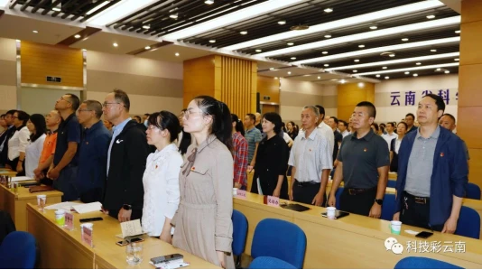 省科技厅党组书记、厅长王学勤,党组成员、副厅长关鼎禄、阮朝奇、高俊、赵海波,厅机关及驻厅纪检监察组全体人员,云科院、直属单位副处及以上党员领导干部参加。
