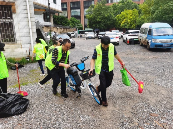 开展爱国卫生志愿服务,守护洁净家园。在祥云社区和卫城社区相关区域内,党员志愿者积极发挥奉献精神,不怕脏、不怕累,个个奋力争先,利用铁锹、火钳、扫把、铲子等劳动工具,全面清扫路面、清理杂草、捡拾垃圾、摆放共享单车等,并将清理出的杂草、白色垃圾等统一装入垃圾袋,以便环卫部门集中清理。通过大家的共同努力,该区域卫生死角得到彻底消除,环境卫生得到整体提升。