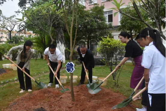 讲座结束后,易俊洁教授与学校领导、学生代表、参与活动的工作人员携手栽种象征友谊与希望的树苗,友谊树不仅承载着科学精神的传承和师生之间的深厚情谊,更象征着科学知识的薪火,将在校园中扎根生长、持续传递。