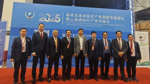2025年10月30日至11月1日,“2025南亚东南亚医疗产业创新发展论坛暨云南省医疗产业对接会”在昆明滇池国际会展中心召开,大会由东方企业创新发展中心主办,人民药业有限公司、云南纵腾商务会展有限责任公司承办,云南省医疗器械行业协会、云南省医师协会智慧医疗委员会等机构协办。大会汇聚了柬埔寨卫生部副部长、柬埔寨国家药剂师委员会主席Mr. Ban Botta,RCEP产业合作委员会柬埔寨执行主席 Mr. MO SHUN KAN,柬埔寨国际商会青年发展处处长 Johnny Mo,老挝人民民主共和国卫生部传统医学研究院院长 Bounleuane DOUANGDEUANE,仰光省公共卫生部主任 Dr. MYINT MYAT,缅甸贸易中心主席 Aung Thein Naing,越南医疗设备商协会理事长 THI VIET HA NGUYEN等南亚东南亚国家医疗领域高级官员。来自全国各地的医疗产业专家学者、企业精英、行业协会代表及国药集团等参展企业代表共计300余人出席会议。