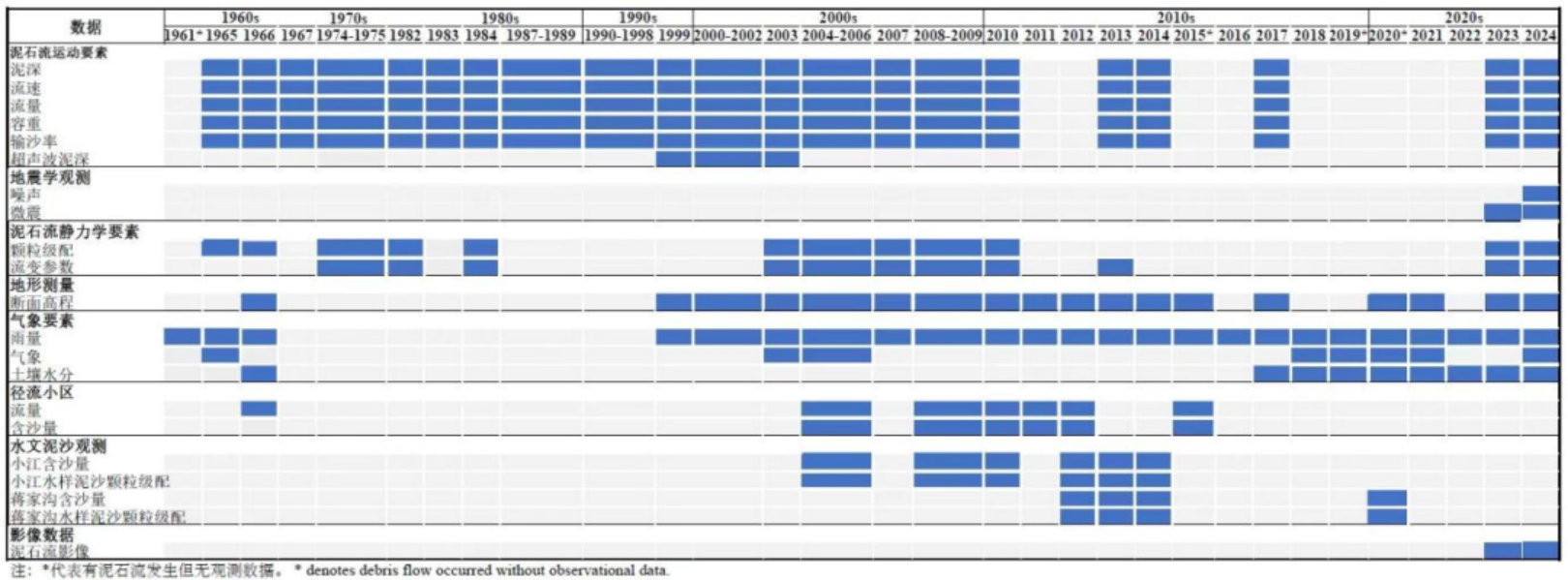 六十余年来,东川站作为中国科学院、水利部成都山地灾害与环境研究所的核心野外台站,积累了涵盖泥石流运动学、力学、地震响应、视频影像及沟道地形演变等多维度数据,并同步收集降雨、土壤湿度、径流泥沙等环境参量,逐步形成全球唯一的长时序、多要素泥石流监测数据体系。