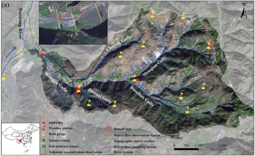 泥石流是山区常见的地质灾害,具有突发性强、破坏力大、成灾机理复杂等特点。长期以来,泥石流形成机理与运动规律的研究一直受限于野外实测数据的匮乏,尤其是系统性、长时序、多要素的综合观测资料更为稀缺。东川站所在的云南蒋家沟地处小江断裂带,地质构造活跃、降雨集中、松散物源丰富,泥石流活动频繁且规模巨大,被誉为“泥石流天然博物馆”。