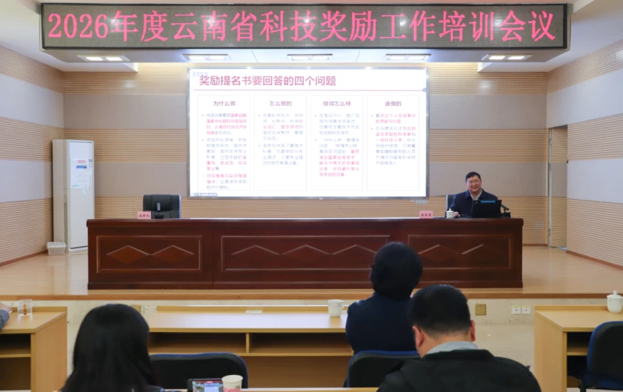 近日,云南省科技厅组织召开2026年度全省科技奖励工作培训会,深入贯彻落实国家和省科技奖励制度改革精神,对2025年科技奖励工作进行总结,对2026年奖励提名工作进行动员安排和业务培训。全省16个州(市)科技管理部门、省级提名单位、有关高校、科研院所、企业、医院等单位同志及有报奖意向的科技人员约1000人,通过线上和线下方式参加了会议。