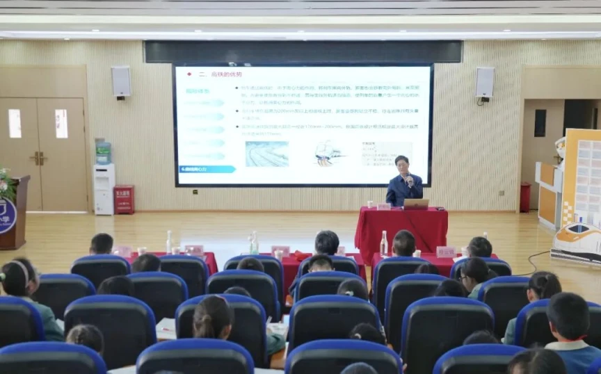 科普讲座中,他以《中国高速铁路创新与发展》为题,结合自身经历,讲述了中国高铁从技术引进、消化吸收到自主创新,实现从“追赶者”到“领跑者”跨越的历程,阐释了铁路建设与科技创新如何连接世界,将科学知识转化为孩子们听得懂的故事。学生们边听边问,院士逐一作答,现场互动热烈,一问一答间,崇尚科学、热爱科学的种子悄然在孩子们心中生根。