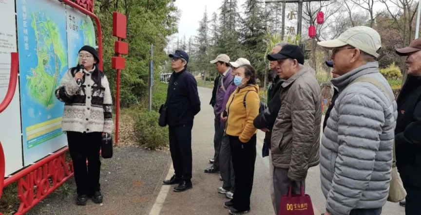 踏入牛恋小渔村,清新的湖风伴着草木清香扑面而来,眼前的美景让老同志们眼前一亮。整洁的村道蜿蜒向前,黄墙黛瓦的民居错落有致,滇池边的绿道波光粼粼,昔日的传统村落早已换了新颜。在讲解员的带领下,老同志们先后走进村史馆、渔乐圈营地、甜咪西农家乐等点位,循着小渔村的蝶变轨迹,沉浸式感受“绿水青山就是金山银山”的生动实践。